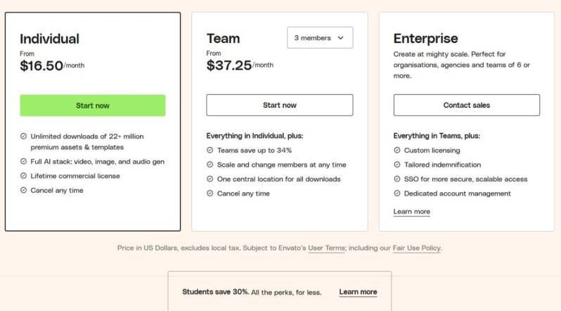 In my exploration of AI platforms, I recently tested Envato's Gen AI Image Gen. As someone who always starts with free options, I was impressed by the generous number of images it produces per prompt. With each prompt, you receive five image generations, and each of those prompts generates 6-8 unique images in a variety of styles. Compared to many subscription-based platforms, this offers significantly more value at no cost, making it an excellent "try-before-you-buy" experience. Best of all, there’s no confusing credit or token system—just straightforward image generation and downloads. Envato ensures everyone has plenty of opportunities to create and save high-quality images with ease. That being said, there is still a subscription, and I think the price for the individual plan is pretty good for unlimited use. See the Envato subscription breakdown at the bottom of this page. It is from the Envato site, so it is up to date and details what is included in each subscription plan.